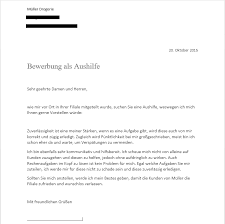 Sehr geehrter herr beispiel auf der internetseite der arbeitsagentur bin ich auf ihre stellenanzeige gestoßen mit der sie eine aushilfe im verkauf suchen. Vorlagen und musterschreiben für die bewerbung für die bewerbungsunterlagen bei einer bewerbung als aushilfe gelten ähnliche regeln wie für die sogenannte kurzbewerbung. Sie müssen keinen blitzsauberen lebenslauf vorlegen keine super noten in der schule gesammelt oder zahlreiche praktika absolviert haben.